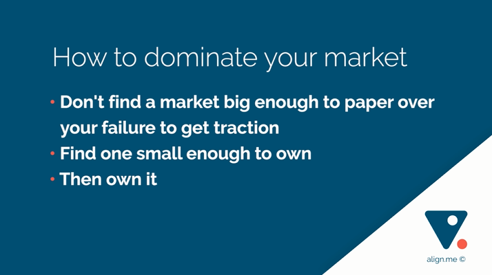 Work out what dominance looks like in your market and find a market small enough to own.