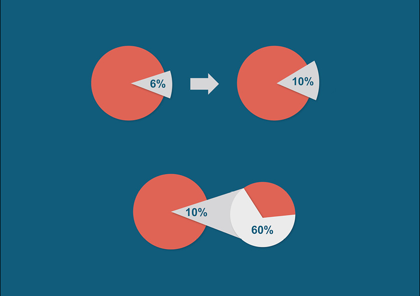 Here’s the switch: you hold the same 6% you did before, but you’re now getting that 6% from a slice of the market that is only 10% of the total market. In other words, to that 10% slice or segment, you are the 60% provider. You are the biggest game in town for them. You might be nobody for the other 90%, but for that 10%, you’re the gorilla.