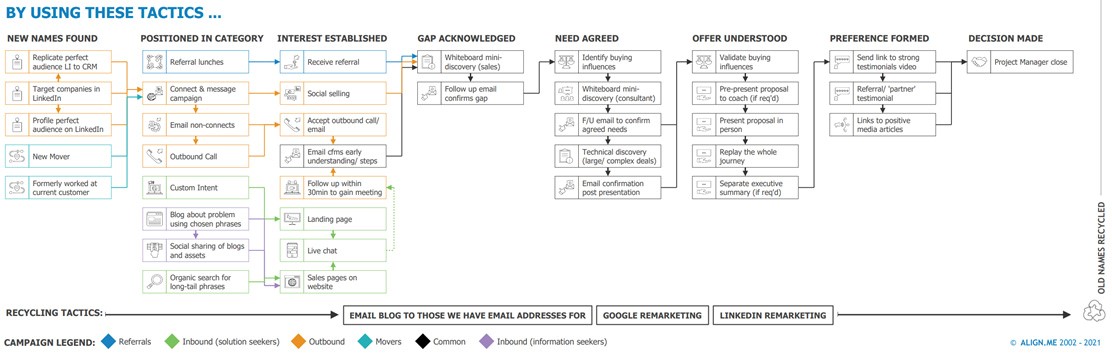 In another of my longer-form ‘definitive guide’ articles, I argued that every business needs to craft its own set of tactics for each stage of the buyer’s journey. And they should have the CEO (or divisional head) and the heads of each of Sales, Marketing, Pre-sales in the room when they craft their tactics for the buyer’s journey, and often a half a dozen others who report to these leaders. And they probably should have an experienced facilitator lead them through the process of considering, debating, forming their tactics roadmap for the buyer’s journey