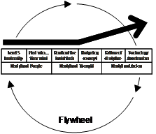 3. Creating ‘flywheel momentum’: sustainable transformations follow a pattern of build-up and breakthrough. Like pushing a flywheel, it takes effort to get things moving, but persistence builds momentum and breakthrough.